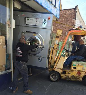 New Hydro Carbon Firbirmatic dry cleaning machine below being installed